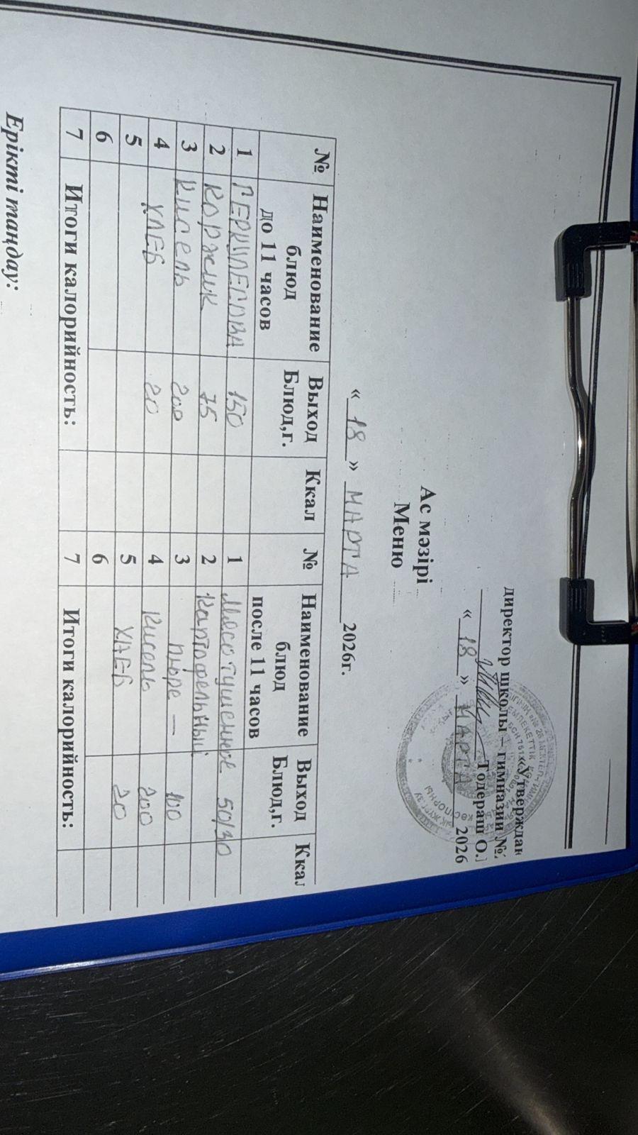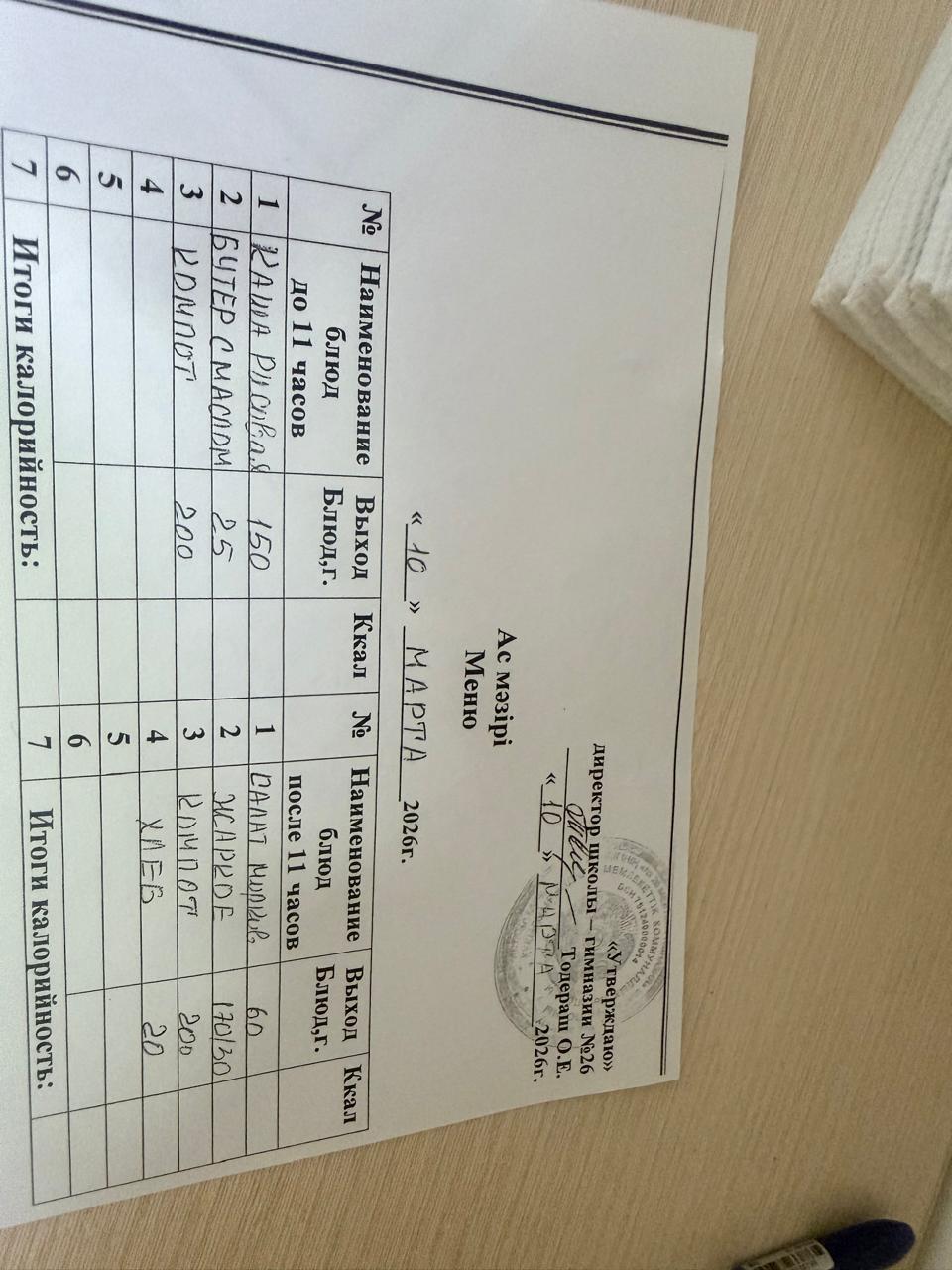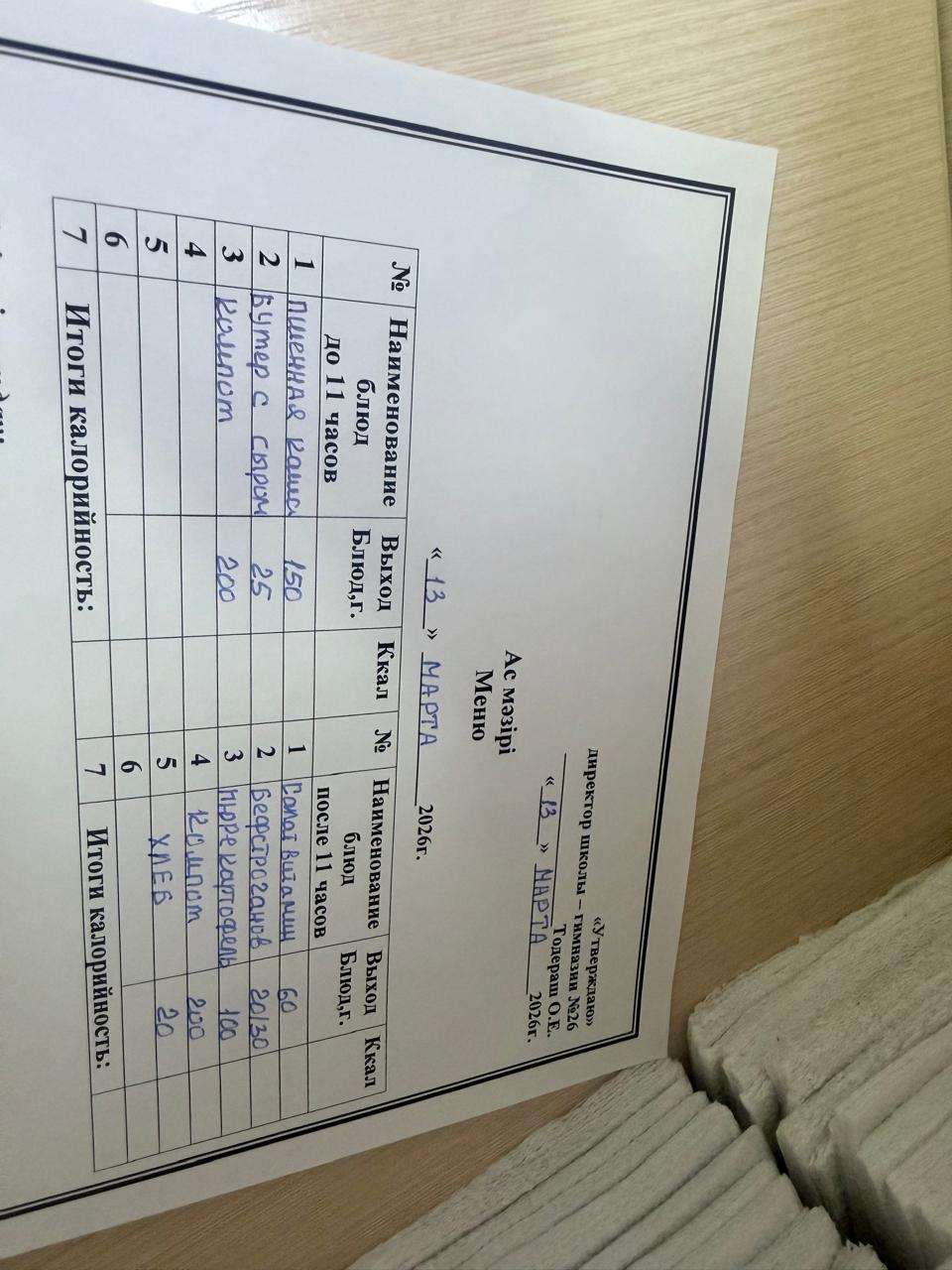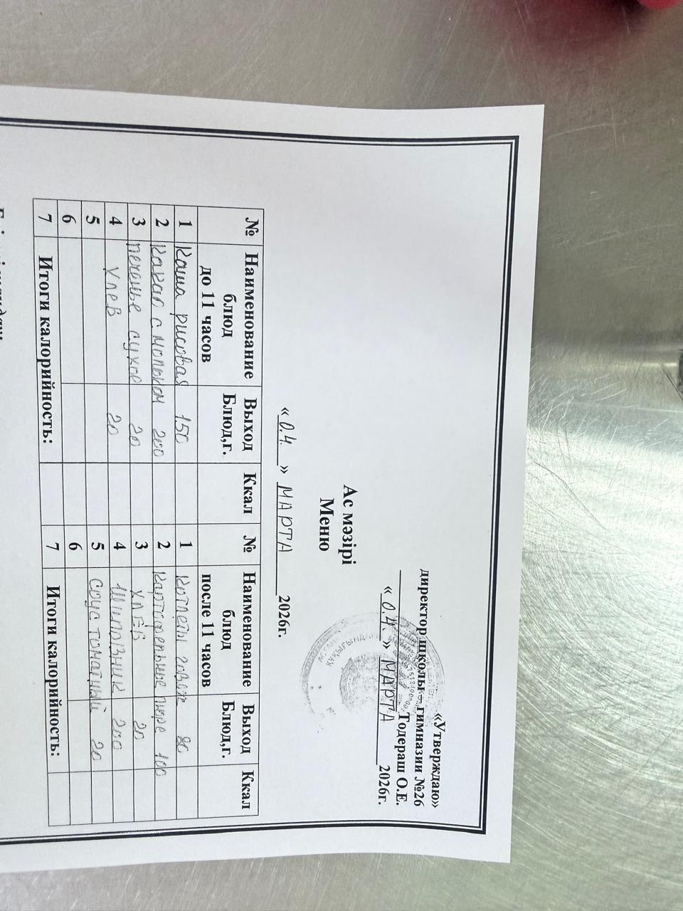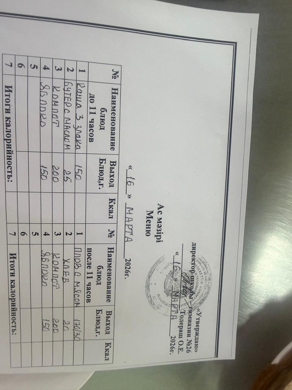 Меню 2024-2025 оқу жылына